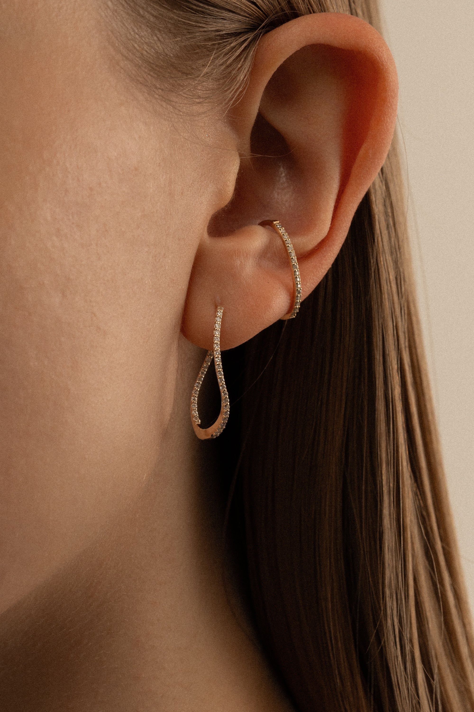 It hangs over your cartilage for a stress-free fit. The design with diamonds scattered in a straight line creates a gorgeous and beautiful look in your ears.